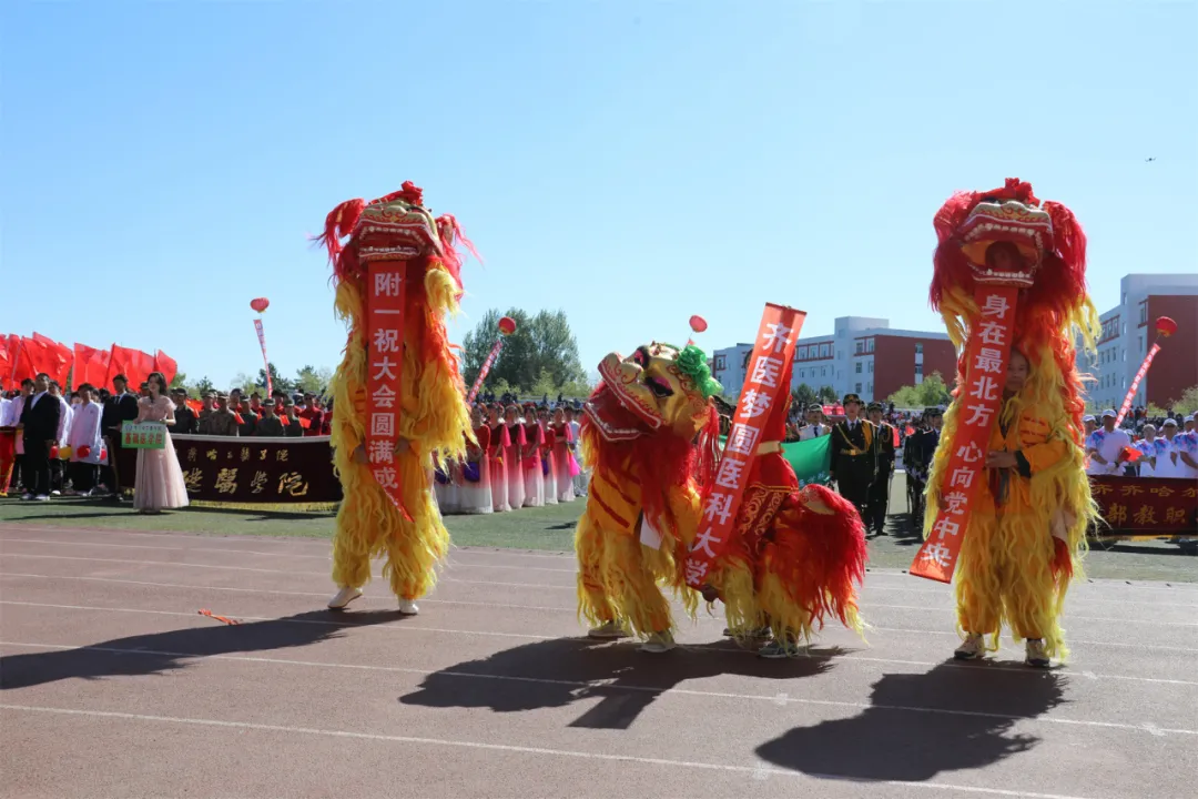 青春逢盛世,奋斗正当时。这是一支匠心独运、亮点纷呈、特色鲜明的方阵,彰显了附一人的飒爽英姿和独特个性。一个腾空飞跃,舞狮队动作干净利落,三幅条幅同一时间由狮口吐出,引得场上阵阵掌声,精彩的舞狮表演更是为检阅队伍增添浓墨重彩的一笔,成为运动会上最亮丽的风景线。