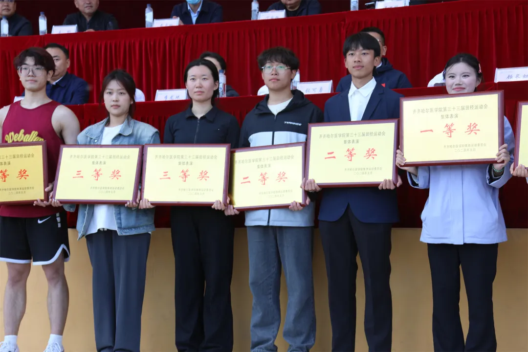 24日11时,学院第三十三届田径运动会胜利闭幕,我院代表队获得了道德风尚奖。本次运动会赛出了风格、赛出了水平,充分展现了我院师生队伍团结、拼搏、积极、乐观的精神面貌和青春风采,实现了“运动水平”和“精神文明”的双丰收,也激励我院广大医务员工以更加饱满的精神状态奋进新征程、争创新佳绩,为建院70周年献礼。