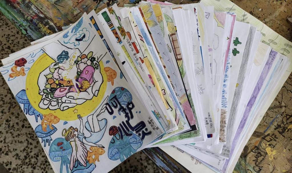 本次主题绘画比赛在一周内共征集到百余幅作品。同学们用心创作,一幅幅作品画工精良,以日常生活为灵感,运用丰富的色彩和线条勾勒出同学们的内心体验,通过绘画抒发心中所思所想,挥洒积极乐观的心理状态。