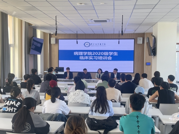为确保2020级学生实习工作的顺利进行,5月27日,病理学院在形态楼101智慧教室召开了实习培训会。病理学院党总支书记李迎新、院长李兴江、副书记沈焕泉、副院长刘婷、病理诊断中心窦薇及全体2020级学生参加,会议由教学副院长刘婷主持。
