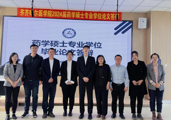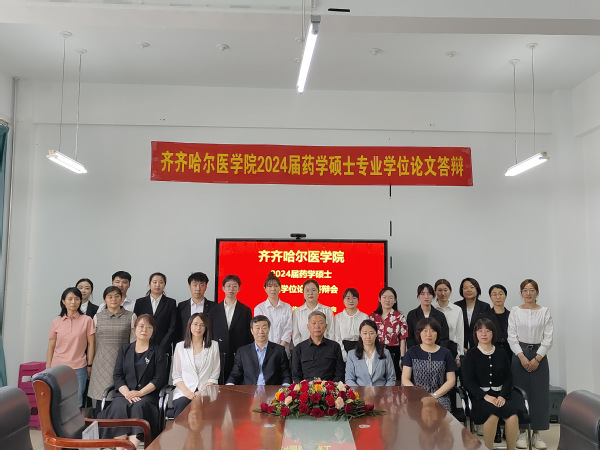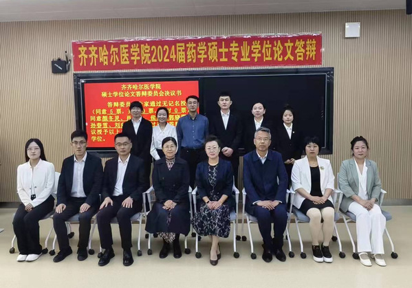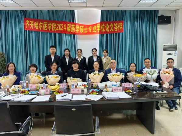 5月25日、5月27日药学院举办2024届药学硕士专业学位论文答辩会。沈阳药科大学孟大利教授,哈尔滨医科大学吕延杰教授、杨春娟教授,黑龙江中医药大学阎雪莹教授,齐齐哈尔大学赵冰教授,哈尔滨医科大学附属第六医院马满玲教授等应邀担任药学专硕各研究方向答辩委员主席。学院副院长于海涛出席会议并指导答辩工作。学院药学学科带头人刘吉成教授、研究生院副院长卢长方、科研处副处长岳丽玲、药学院领导班子成员、各方向答辩委员会成员,毕业生及毕业生导师、在读研究生等参加答辩会。