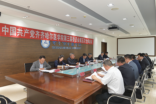 5月31日下午,中国共产党齐齐哈尔医学院第三届委员会第五次全体会议在图书行政楼1804会议室召开。学院党委书记顾长虹主持会议,全体在院党委委员出席会议。