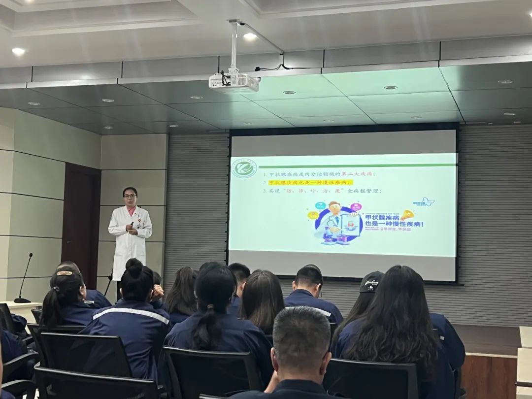 核医学科主任李春香和普外科副主任周涛分别以《得了甲状腺结节,怎么办?》《甲状腺常见疾病及甲状腺结节评估与处理》为题为职工科普甲状腺疾病防治知识。李春香主任提醒大家要定期体检,关注甲状腺健康,早发现早治疗。周涛副主任表示如果在体检中查出甲状腺结节,不论大小都应接受医生的专业评估、诊断和治疗,确保甲状腺的健康,避免潜在的健康风险。