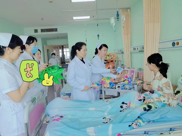 每年“六一”儿童节给孩子们送祝福、送礼物,已经是儿科科室文化的一部分,儿科全体医护人员和小朋友们互动交流,祝小朋友们节日快乐,希望每个孩子能健康茁壮的成长,也希望家长及孩子在这里度过一个快乐而有意义的节日。儿科副主任亢杨说:“孩子是祖国的未来,民族的希望,我们不仅要守护他们的身体健康,更要关心和注重他们心灵的成长,人格的培养和性格的塑型。让每个孩子拥有一个健康、开心、快乐的童年不仅是我们的责任,也将是全社会共同的责任!”