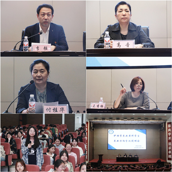 会上,马秀梅副院长宣读了《关于进行2022级护理学本科学生专业方向分化的通知》和《2022级护理学本科学生专业方向分化实施方案》。李强书记从专业方向分化背景和依据、专业方向分化依托的优势、专业方向分化未来展望三个方面对学生进行动员,对历年专业方向分化情况进行了介绍,尤其对今年新开设的老年护理方向进行了详细讲解,希望学有余力的同学根据自己的意愿进行选择。高音院长在讲话中指出,目前护理学、助产学为国家控制布点专业,新医科背景下为满足我国未来社会发展的专业人才需求,我院《2022版护理学专业人才培养方案》在原有精神科护理方向、助产护理方向基础上增设老年护理方向,特色专业方向可以作为护理学专业毕业生的就业优势之一,希望各位同学根据自身未来发展需要选择适合自己的专业方向。与会学生就专业分化方向、课程修读、实习安排及毕业修读证明等问题进行了现场咨询,与会领导皆悉心解答。