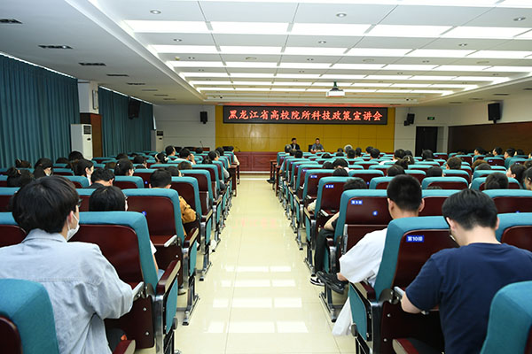 6月5日下午,黑龙江省科技厅外国专家服务与对外合作处处长王海泉、副处长孙金良来院,开展科技政策宣讲,同时就省级高端外国专家引进计划资助项目进行调研。宣讲会在科技楼五楼学术报告厅举行,由学院副院长于海涛主持。齐齐哈尔市科技局局长黄静、副局长尤佳丽出席会议,各二级学院分管科研副院长、科研管理人员及科研骨干教师100余人参会。