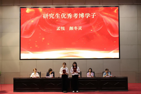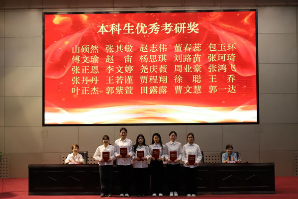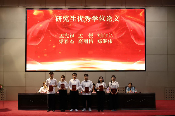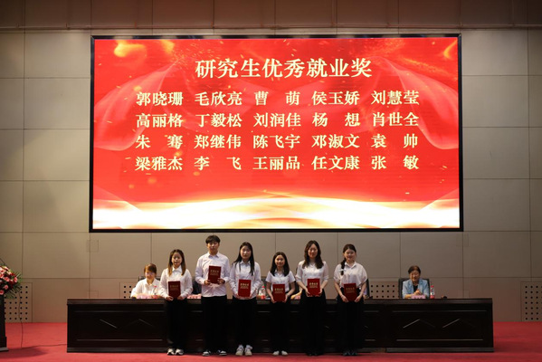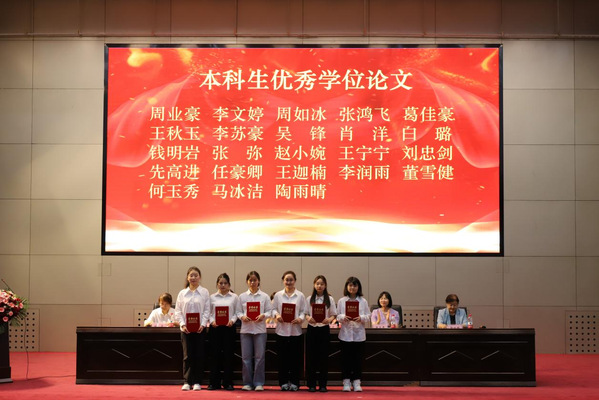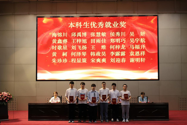 典礼上,宣读了《关于命名表彰2024届毕业生“优秀就业奖”的决定》《关于命名表彰2024届毕业生“优秀升学奖”的决定》《关于命名表彰2024届毕业生“优秀实习生”的决定》《关于表彰2024届“优秀学位论文”的决定》《关于命名表彰2024届毕业生“突出成绩奖”的决定》,向被表彰的全体毕业生一一颁发证书并合影留念。98名本科生、20名研究生获得“优秀就业奖”,49名本科生获得“优秀考研奖”,2名研究生被评为“优秀考博学子”,8名本科生被评为“优秀实习生”,23名本科生、6名研究生获得“优秀学位论文”奖,13名研究生获得“突出成绩奖”。