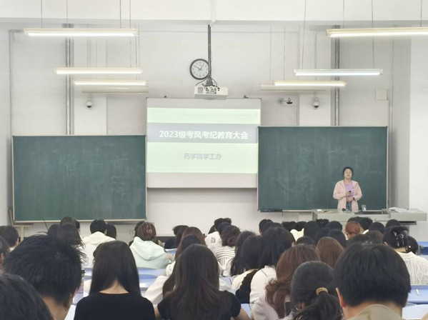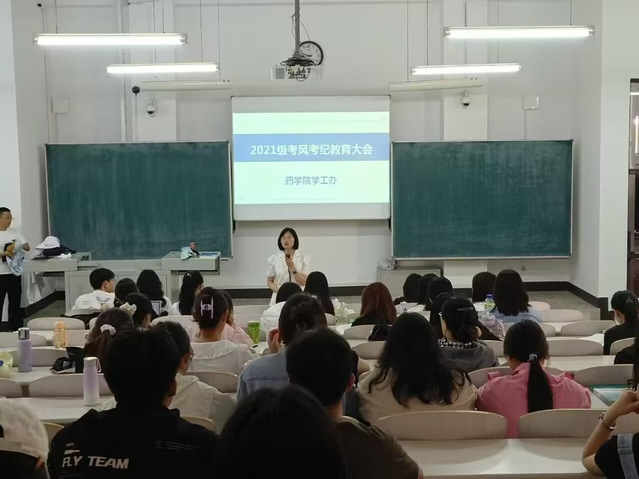 为营造诚实守信的考试氛围,教育学生严守考试纪律,在期末考试和大学生英语四六级考试到来之际,药学院以年级为单位召开考风考纪主题教育大会。