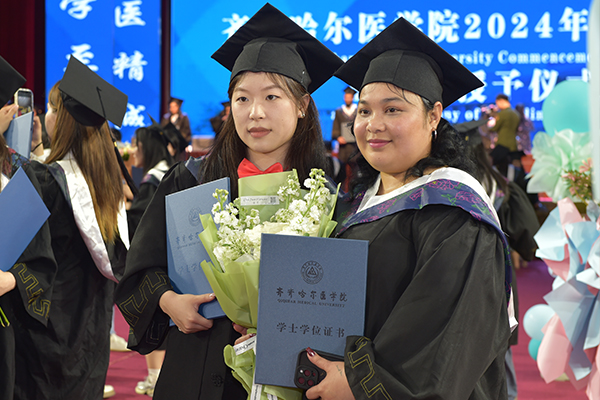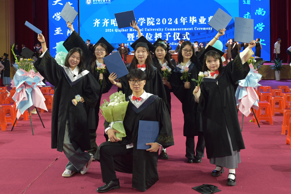 2024届毕业生中,有3人考取了博士研究生、463人考取国家统招硕士研究生,其中79人考取了“985”等优秀院校研究生,53人被授予省优秀毕业生称号,92人被授予校优秀毕业生称号。很多人选择了从事医药卫生行业,到祖国最需要的地方发光发热,将青春和汗水融入到实现“健康中国”“健康龙江”伟业之中。祝愿2024届毕业生在实现中华民族伟大复兴的赛道上奋勇争先,母校将永远是同学们最坚强的后盾。