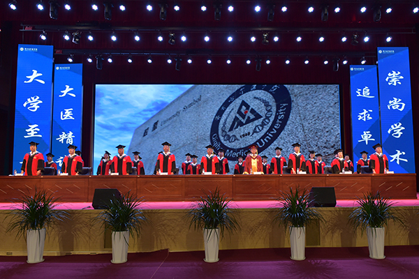 在庄严的国歌声中,毕业典礼正式开始,全体学生重温医学生誓言。学院院长赵光发表毕业寄语,学院党委副书记张可勇主持毕业典礼。学院党委副书记迟沫涵,学院副院长史耀忠,学院纪委书记、二级高级监察官李龙珠分别宣读了学院2024届硕士研究生、本科生、留学生和高等学历继续教育学生毕业及学位授予情况,学院副院长于海涛宣读了2024届优秀硕士毕业生、优秀本科毕业生表彰决定。