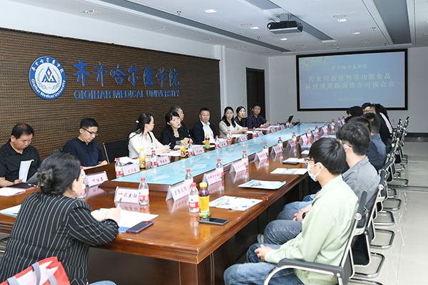 6月20日下午,学院联合齐齐哈尔市科技局,在学院图书行政楼1804会议室举办了齐齐哈尔医学院药食同源植物基功能食品科技成果推介对接会议。学院副院长于海涛出席会议并讲话,市科技局局长黄静主持会议。