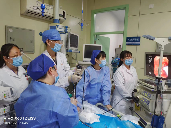 呼吸与危重症医学科一病区副主任牟海军及其团队行呼吸介入术
