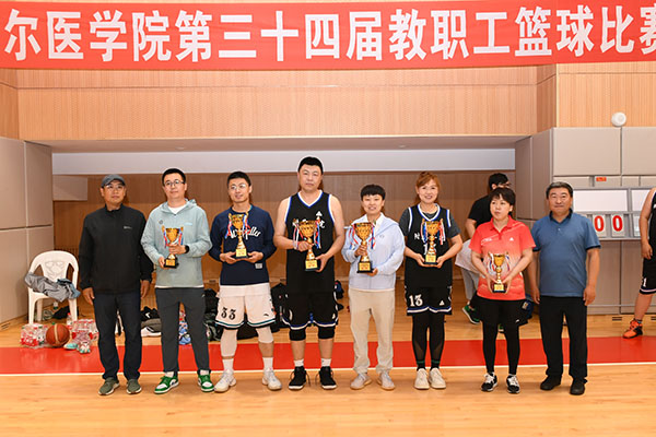 本次比赛得到了各基层工会和教职工篮球爱好者的大力支持,来自全院13个基层工会的运动员代表参加了比赛。赛场上,队员们斗志昂扬、你争我夺,充分发扬了团队协作精神,展现了顽强不屈的毅力。赛场外的观众亦热情高涨,加油声、呐喊声此起彼伏。经过激烈角逐,男子组比赛中,附属二院代表队荣获冠军,附属一院代表队获得亚军,学院机关后勤联队获得季军;女子组比赛中,学院机关后勤联队荣获冠军,附属二院代表队获得亚军,附属三院代表队获得季军。工会副主席王彬、体育教研部主任郑大明为获奖代表队颁奖。