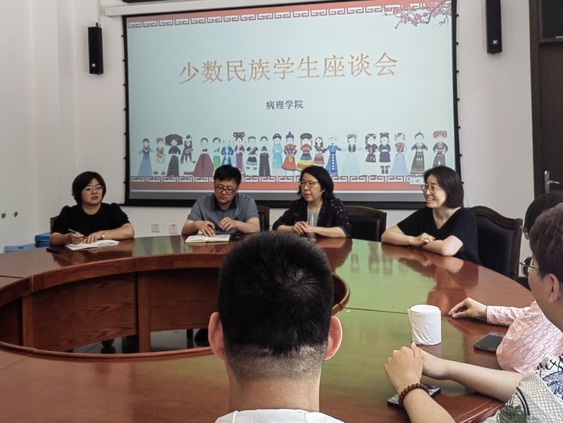 为了促进学院内各民族学生之间的交流与融合,加强对少数民族学生的关心和支持,共同推动学院的和谐发展,6月25日病理学院召开了少数民族学生座谈会。病理学院党总支书记李迎新、党总支副书记沈焕泉、学工办主任孙荣利、辅导员汲秋宇及各年级少数民族学生参加了本次会议,会议由学工办主任孙荣利主持。