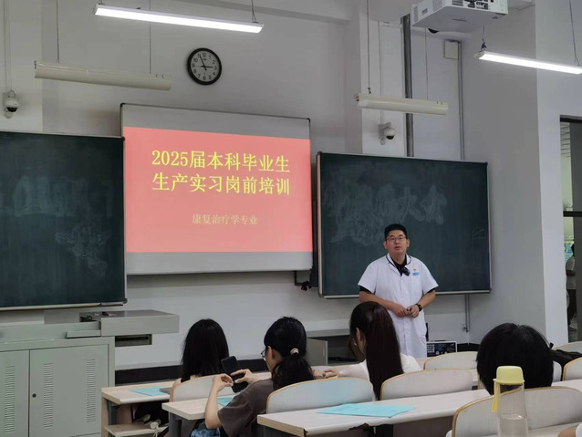 为了规范岗前培训,提高实习质量,让实习生明确实习目的、进入实习角色、规范实习行为、培养临床思维、锻炼实践操作能力,6月27日下午,我院特邀请附属二院CT中心副主任王东旭、康复医学教研室主任胡斌、检验科副主任张建坤、设备教研室主任郝利国、电子学教研室主任李靖宇分别对即将参加毕业生产实习的2020级医学影像学、2021级康复治疗学、医学检验技术、医学影像技术、生物医学工程五个专业的学生进行了专业岗前培训。