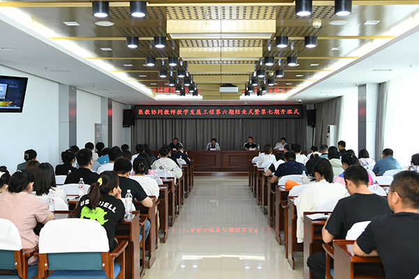 6月26日上午,学院在图书行政楼1801会议室召开了医教协同教师教学发展工程第六期结业式暨第七期开班式。学院副院长于海涛出席会议并讲话,学院特聘专家、中国医科大学孙宝志教授出席会议并作讲座,第七期医教协同全体培训教师及第六期优秀教师代表、学院教学督导等70余人参加会议。会议由高教研究与教学质量评估中心主任云长海主持。