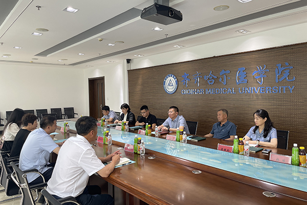 张可勇对黄振宇一行来访表示热烈欢迎,对呼玛县为齐齐哈尔医学院黄芪产业研究院两名专家援边工作提供的支持和帮助表示衷心的感谢。他介绍了学院的历史沿革,以及师资队伍、学生成长、科研平台、科研成果等近年来的发展建设情况,重点介绍了黄芪产业研究院科研成果转化、研究现状和发展趋势等。