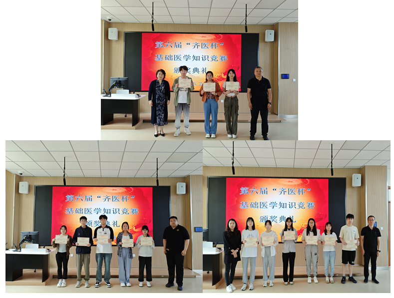 基础医学院6月24日为获奖选手举办颁奖典礼,领导班子全体为获奖选手颁发了荣誉证书和奖品,并对他们在竞赛中的优异表现给予了高度评价。