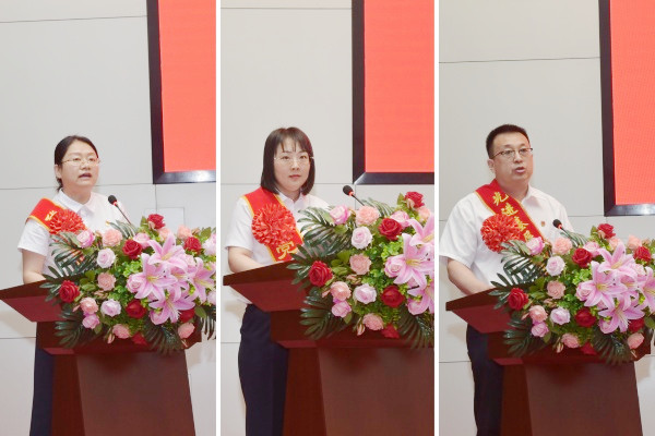 优秀个人和先进党组织代表,教务处副处长钱丽丽,护理学院教师第一党支部书记、正科级组织员魏洪娟,附属第三医院外科第三党支部书记、外科系主任、骨外科五病房主任孙文才分别作典型发言。