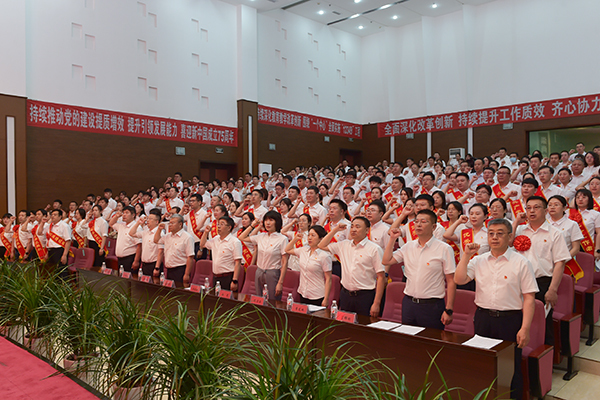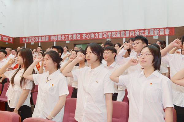 会议在雄壮的国歌声中拉开帷幕。学院党委组织部副部长马飞带领新党员宣誓、老党员重温入党誓词,引导全院广大党员赓续红色血脉、坚定理想信念、锤炼坚强党性。
