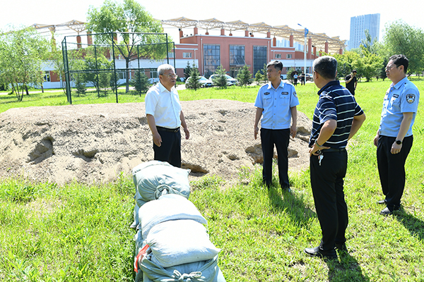 史耀忠先后到学院湖边栈道、校园公共区域、防汛物资储备场所等地,实地查看了校园周边水域水位情况和学院防汛物资储备、管理情况,并对做好当前校园防汛工作进行了现场部署。史耀忠指出,当前全省已进入主汛期,部分地区降雨集中,多条河流超警戒水位,国家和省已启动防汛四级应急响应。各单位、部门要充分认清当前严峻复杂的防汛形势,强化底线思维、极限思维,抢抓降雨相对间歇期,扎实做好各项防汛准备工作。