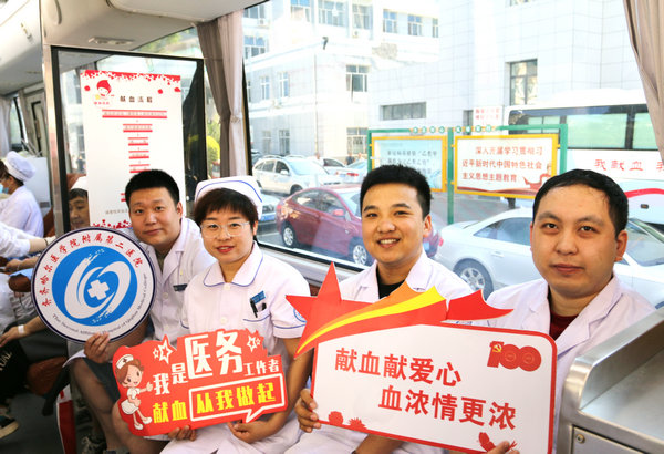 浓浓热血践行初心,仁心大爱点亮生命。齐医附属二院充分发挥全国文明单位和全国无偿献血促进奖(单位奖)的示范引领作用和伟大抗疫精神,切实保障医疗机构临床用血需要,以实际行动向党的103周年华诞献礼,用凡人善举浇灌杏林、彰显风采,用医者大爱传递社会温暖、播散希望。(撰稿、摄像:宣传科 赵萌 责编:宣传科 吕唱 一审:于海明 二审:高秀文 三审:丁国旭)