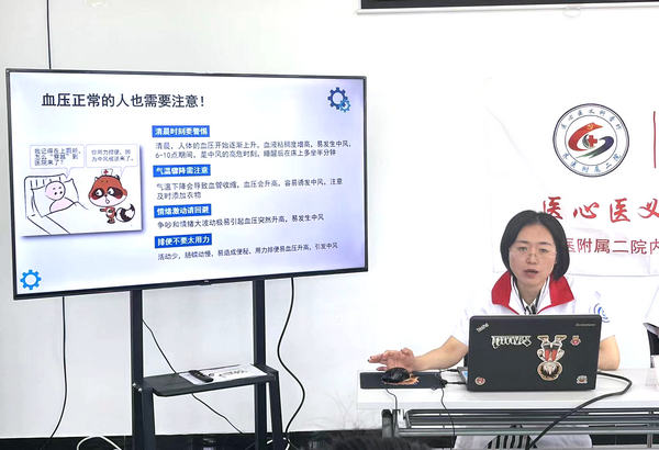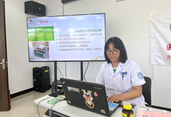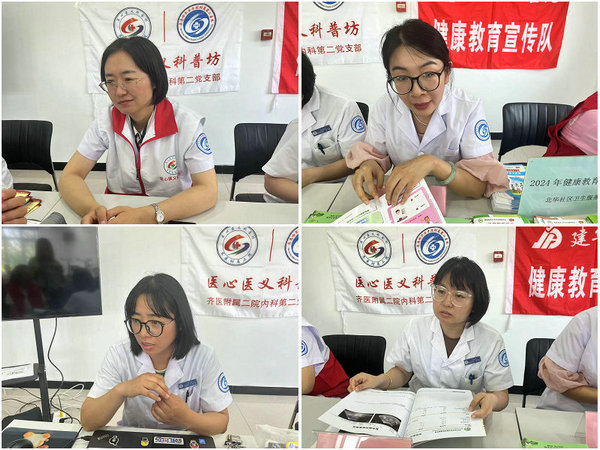 义诊前,齐医附属二院神经内科五病区主任刘洋、药学部药师王杰为居民们精心准备了健康科普讲座,她们就脑卒中的健康管理、健康生活方式的重要性、药物的基本知识等问题进行了详细的讲解。