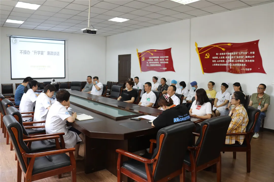 按照学院纪委《严禁党员干部及公职人员违规操办“升学宴”的通知》要求,医院党委开展纠治违规操办“升学宴”系列活动。7月3日上午,医院党委在24号院第一会议室对家有子女升学的22名干部职工开展廉政谈话,会议由纪委办公室副主任林瀚主持,医院党委书记刘晖、纪委书记张娜、党委办公室主任吴颖参加会议。