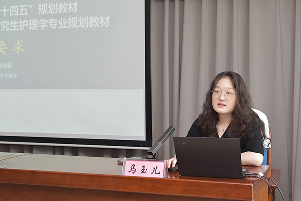 定稿会开幕式上,于海涛代表学院致欢迎辞。他对参加本次会议的人民卫生出版社领导、教材编写团队成员表示热烈欢迎,向人民卫生出版社将此次会议交由齐齐哈尔医学院承办表示衷心感谢!他介绍了学院积极推动医学教育创新发展,持续推进一流专业、一流课程、学科建设及研究生教育的基本情况,希望长期以来给予学院关心和支持的领导和专家对学院护理学专业学科发展建设提出更多宝贵建议。他强调,全国高等学校研究生护理学专业规划教材是目前护理教育最高水平的国家规划教材,自第一轮出版以来,历经3次修订,教材品种和形式不断丰富、完善和创新,为我国护理学专业研究生教育发展及护理专业人才培养作出了突出贡献。此次围绕编写第四轮高质量新形态研究生护理学专业规划教材《社区护理理论与实践(第3版)》的定稿会议,也是贯彻落实习近平总书记对研究生教育工作的重要指示和全国研究生教育会议精神的具体行动,将为全国护理教学领域专家学者提供宝贵的交流平台,更是学院师生一次难得的学习机会。他指出,学院将继续准确把握新时代方位,深刻认识新形势新任务,与兄弟院校协同合作,充分发挥教材铸魂育人、关键支撑、固本培元、文化交流等积极作用,培养更多更优秀更高质量的高级护理人才。
