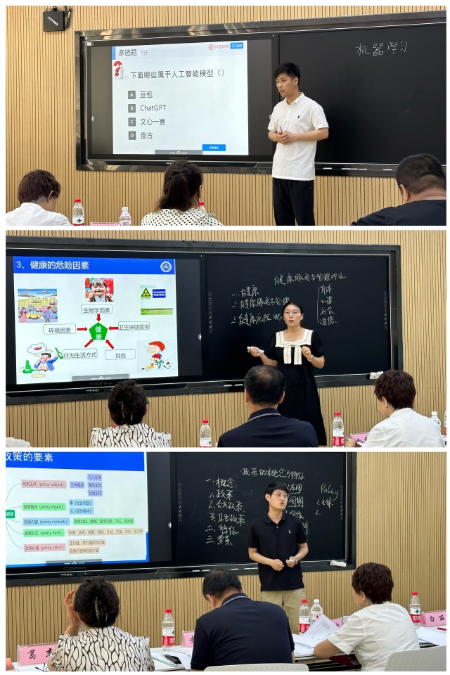 本次新教师试讲活动邀请到校级教学督导孙要武教授、学科专家史孝志教授、白丽教授、葛杰副教授、姚业祥副教授、赵浴光副教授及学生代表等7人担任评委,对2023年9月入职新开课的3名教师进行了考核和点评。试讲内容分为说课和试讲两部分,试讲课程涵盖了《健康服务与管理技能》《卫生政策学》《医疗大数据》等本科课程。