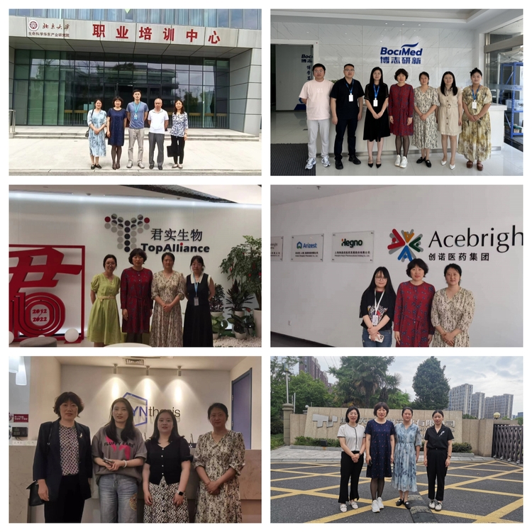 在不到五天的紧张行程中,崔副院长、孔副书记先后走访了华东产业研究院、江苏万高药业股份有限公司、上海博智研新药物研究有限公司、君实生物、上海创诺医药集团有限公司、苏州翔实医药发展有限公司、浙江天元生物药业有限公司、泰格医药8家企业,进行就业资源拓展、学生实习实践基地建设、毕业生回访、人才联合培养和科研合作洽谈。会后参观了实验室、生产车间、食堂、宿舍等场所。