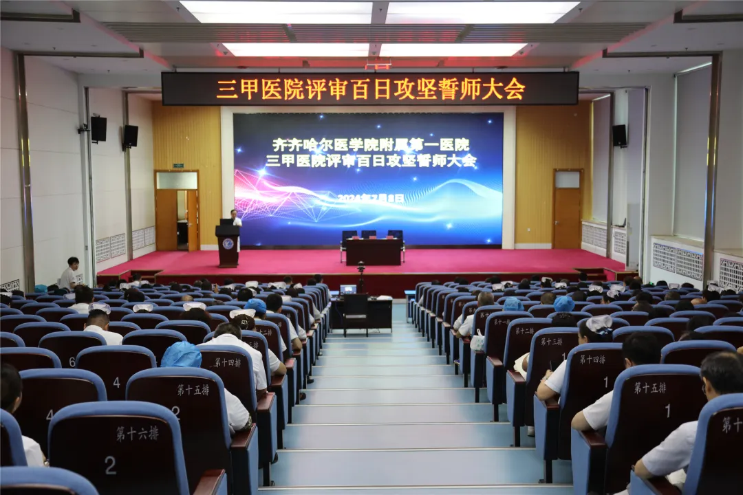 会上,副院长刘增良同志宣读《齐齐哈尔医学院附属第一医院三甲复审百日攻坚行动方案》。临床、医技及职能科室等七名代表上台进行了表态发言。他们纷纷表示要坚守岗位、提高站位、敢于负责、认真履职,带头落实,表达了全院干部职工对三甲评审工作取得全面胜利的信心与决心。