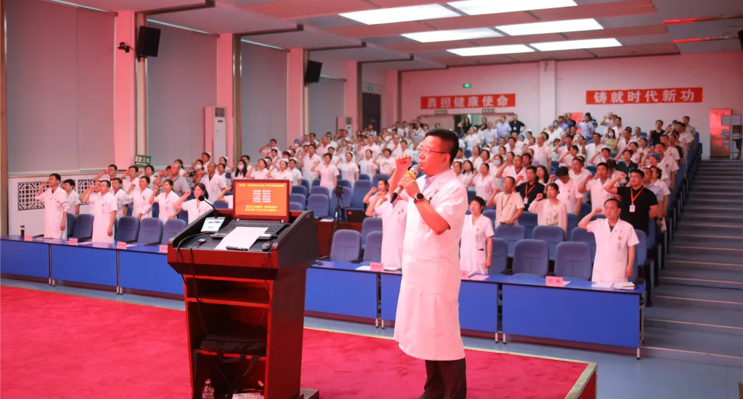 7月8日,齐医附属一院召开三甲医院评审百日攻坚誓师大会,吹响三甲医院复审攻坚奋进的号角,对三甲复审工作进行再动员、再部署、再聚能。院领导班子、全院科主任、护士长、中层干部班组长及副高职以上人员参会。会议由副院长艾立辉主持。