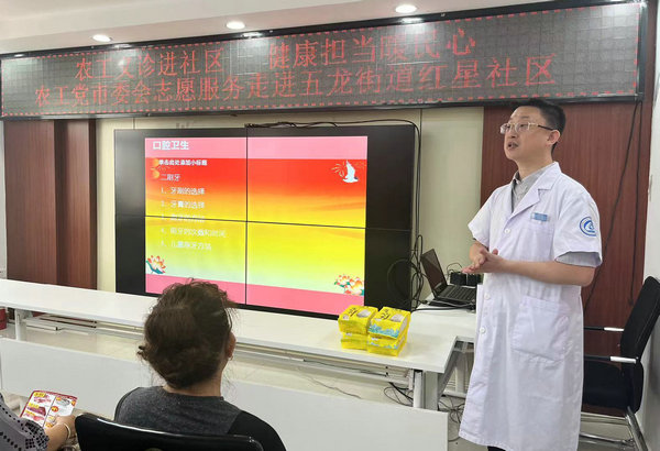 活动中,齐医附属二院口腔科副主任、农工党齐齐哈尔医学院附属第二医院支部主任委员王桥以《口腔卫生与保健》为主题作健康宣讲,向群众传播口腔健康知识,讲解牙齿清洁、牙病防治及如何科学使用牙线、漱口水等口腔保健方法,提高群众自我口腔保健的意识和能力,30余名居民聆听了讲座。