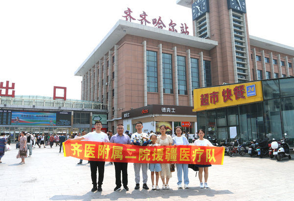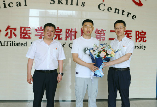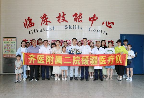 7月14日上午,神经内科四病区主治医师张士存受医院委派前往新疆北屯市北屯医院开展医疗援助。院长、党委副书记武立刚、副院长刘波等领导、职工在临床技能中心一楼为张士存医生送行。