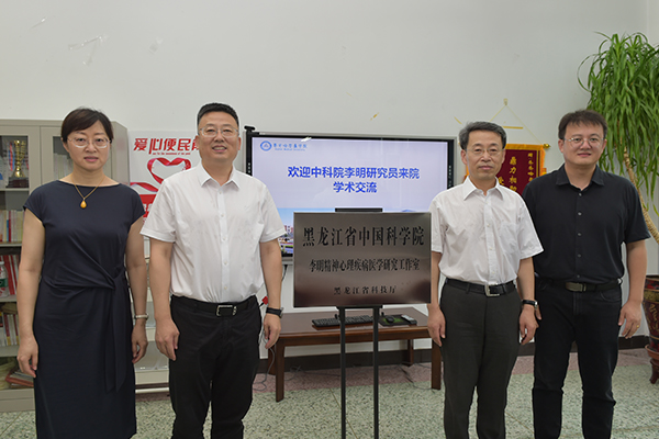 7月31日上午,学院首个黑龙江省中科院科学家工作室——中国科学院李明精神心理疾病医学研究工作室揭牌仪式在精神卫生学院举行。学院副院长于海涛、市科技局副局长贾海林共同为工作室揭牌。中国科学院昆明动物研究所李明研究员,市科技局科技安全与基础平台处处长王志锋,学院科研处副处长岳丽玲、精神卫生学院院长李平、副院长李成冲等出席揭牌仪式。揭牌仪式由精神卫生学院院长李平主持。