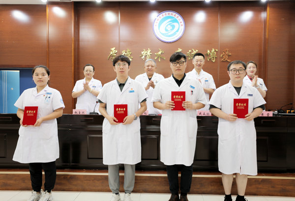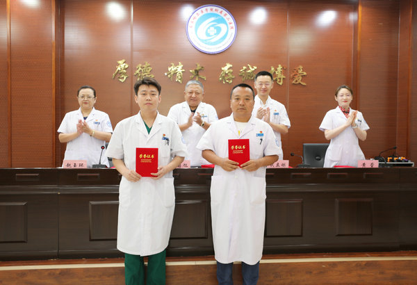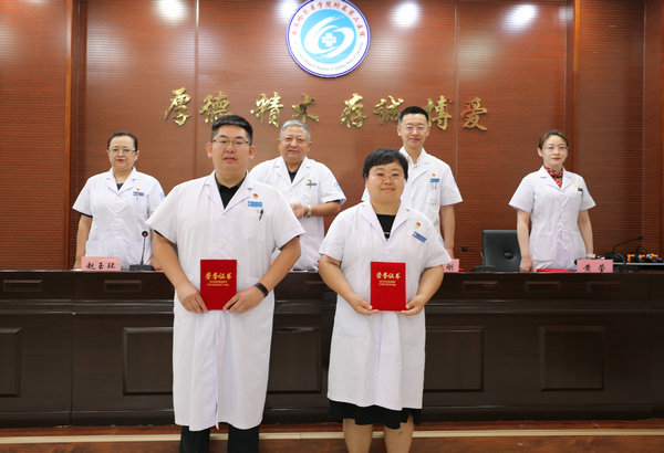 表彰结束后,优秀医师代表薛探、新入职医师代表李烁分别发言。她(他)们以强烈归属感与责任感,充分表达了对医师职业的热爱与追求、对医院的感恩与培育,表示不忘初心、牢记使命,做好自己临床工作,为患者生命保驾护航、为医院发展奉献青春与力量。
