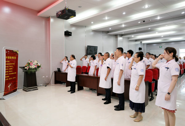 会上,医务部主任于海明领誓,全体与会医师重温了《中国医师宣言》。