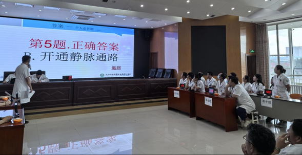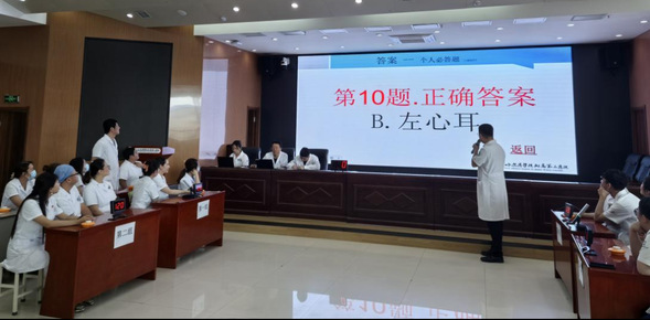 比赛现场气氛热烈。在必答题环节,选手们冷静思考、认真作答,竞赛秩序井然。抢答题环节,各队进入了激烈的竞争局面,比分此起彼伏,每个参赛队伍都不甘示弱,争相抢答,场上气氛十分紧张。风险题环节把现场气氛升到了最高点,选手们不仅展现了超强的专业知识储备,也体现了随机应变的能力和团队间的默契。最终,心内四科获得一等奖;心胸外二科和神经内三科获得二等奖;新生儿科、重症医学科和神经内六科获得三等奖;风湿免疫科、呼吸与危重症医学科二病房、感染科和血液科获得优秀奖。