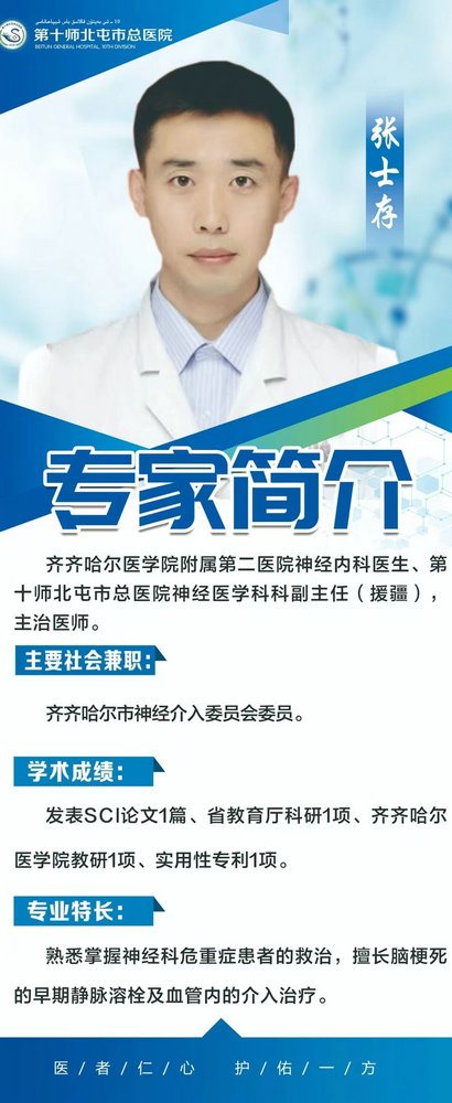 近日,齐医附属二院神经内科四病区主治医师、援疆专家张士存与受援科室第十师北屯市总医院卒中中心通过“溶栓+取栓”桥接治疗双管齐下,为两名急性脑梗死患者打通生命通道,在挽救患者生命的同时,改善了患者的预后。