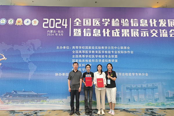 8月17-18日,2024年全国医学检验信息化发展论坛暨信息化成果展示交流会在内蒙古包头成功举办。会议由高等学校国家级实验教学示范中心联席会、全国高等学校医学检验技术专业联盟、南方医科大学、包头医学院主办,中华医学会检验分会协办,会议期间同步进行了学生形态学大赛。学院2021级医学检验技术专业吴莞茹同学荣获形态学技能大赛本科组二等奖、李钰同学荣获三等奖。