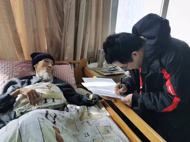 朱尤训老人101岁高龄,14岁入伍,16岁入党,参加过抗日战争和抗美援朝战争,人生跌宕起伏,经历了一个世纪的风雨沧桑,却一生都用军人的风范严格要求自己,退役不褪志,退伍不褪色,在他眼中,他的生命不只属于自己,更是属于祖国,属于人民。他希望自己在生命的最后还能为社会实现自身价值,以另一种形式继续为社会做贡献,最后的贡献。