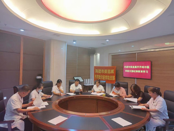 为深入学习贯彻习近平总书记关于加强党纪学习教育的重要论述,引导广大民建党员不断强化纪律意识,加强自我约束,进一步筑牢拒腐防变的思想防线,8月22日,民建市委直属齐齐哈尔医学院支部在齐齐哈尔医学院附属第三医院会议室召开纪律学习教育专题会议,支部全体党员进行专题学习。