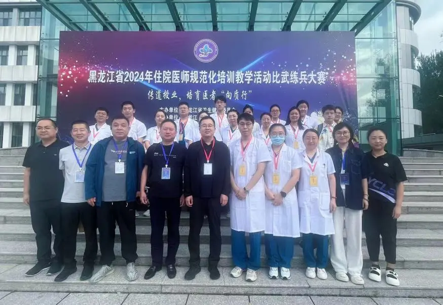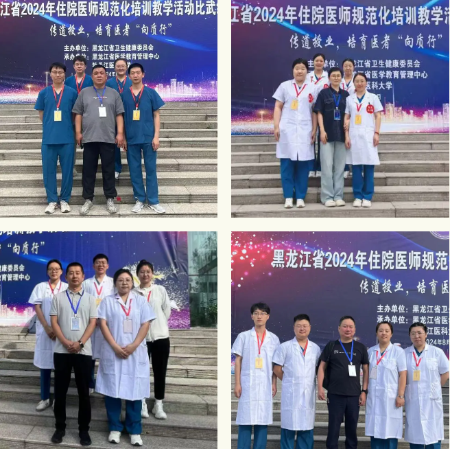 8月24-25日,由黑龙江省卫生健康委员会主办,黑龙江医学教育管理中心与牡丹江医科大学承办的“黑龙江省2024年住院医师规范化培训教学活动比武练兵大赛”在牡丹江医科大学举办。本次大赛的主题为“传道授业,培育医者‘向质行’”。来自全省20家国家级住培基地95支队伍、380名选手参加比赛。我院喜获团体二等奖两项,优秀奖两项,优秀组织奖一项。