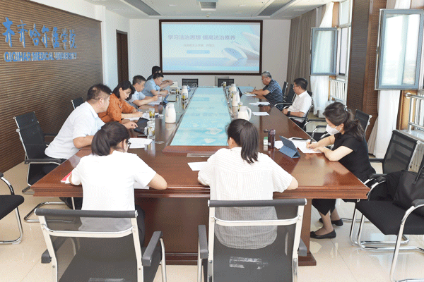 习近平法治思想专题学习中,与会人员集中学习了《习近平论全面依法治国(2024年)》,并邀请学院马克思主义学院院长乔增正以《学习法治思想 提高法治素养》为题,从为什么要全面依法治国、怎样全面依法治国、全面依法国要处理好的若干关系三个方面为中心组成员作专题讲解。