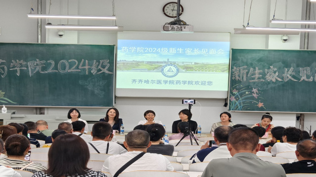会上,院长韩翠艳欢迎新生和家长的到来,对药学院的基本情况、办学历史、专业设置、师资力量及人才培养进行了详细的介绍并与家长和学生进行互动。副院长崔红霞对于课程设置、结业要求以及医学高等院校内药学专业的课程优势进行了讲解。副院长王玉春介绍了科研平台相关情况以及学生的科研思维培养情况。学工办主任、团委书记梁玉清介绍了违纪处分、学业预警、学生行为习惯的养成及安全教育等,并对新生在入学后可能遇到的问题提出建设性意见。辅导员董玉晶进行了自我介绍。