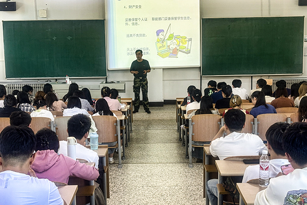 讲座过程中,孙立强以《提升安全意识 增强防范能力——做校园安全的践行示范者》为题,采取现场互动交流的方式,介绍了校园安全的基本概念,并从校园安全防范常识,珍爱生命、远离毒品,扫黑除恶专项斗争等三个方面,对政治安全、消防安全、治安安全、财产安全、交通安全、饮食安全、实验室安全、考试安全、大型活动安全、网络安全、国家安全、保密以及交友安全等其他安全相关知识进行了详细讲解。通过分析发生在身边的真实案例,以案说法,剖析原因,教育学生在日常生活中要牢固树立安全防范意识,提高应急处置能力,合理释放心理压力。同时,教育学生加强法律法规知识的学习,学会正确进行校园报警求助。叮嘱学生从自身做起,从小事做起,发挥模范示范作用,做安全理念的奉行者、安全行为的表率者、安全制度的执行者、安全责任的落实者、安全文化的传播者。并承诺,保卫处将竭尽全力为广大学生安全保驾护航。