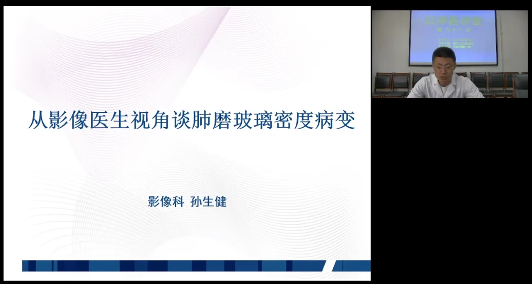 2024年9月4日14:00,齐医附属一院《红岸医讲堂》第九十八讲,我院影像科孙生健副主任主讲《从影像医生视角谈肺磨玻璃密度病变》,讲座通过微信、抖音平台同步直播,线上收看人数近800人。