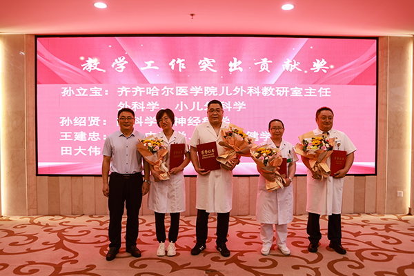 大会对最具教学氛围科室、最负责任临床带教教师、最令人敬佩理论教学老师、本科教学试讲优秀教颁、优秀教研室秘书、优秀教研室及主任、本科教学工作突出贡献个人等进行了表彰奖励,与会领导为获奖人员颁奖。