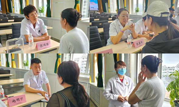 义诊现场,利用课间休息时间前来咨询就诊的老师络绎不绝,大家有序排队等候义诊。教师由于特殊的工作性质和长期的高压状态,深受腰颈肩腿痛、失眠、咽痛等病痛的困扰,来自心血管内科、神经内科、血管外科、口腔科等不同专业的专家们充分发挥自身所长,根据教师群体高发的各类疾病,为他们提供了健康评估和个性化指导,并耐心答疑解惑。我院青年团员志愿者们也积极参与其中,在现场为老师们发放医院宣传册,提供健康咨询,为义诊活动的顺利进行提供了有力保障。